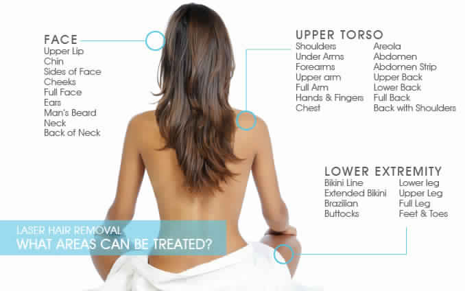 - Underarms: It appears like this part of the body requires to be always groomed and clean, but it easily goes out of mind until you raise your arm high up. Laser hair removal system is effective for removing underarm hairs permanently. Lasers respond rapidly and the treatment takes just 5 minutes to leave you with soft and smooth underarms in no time.